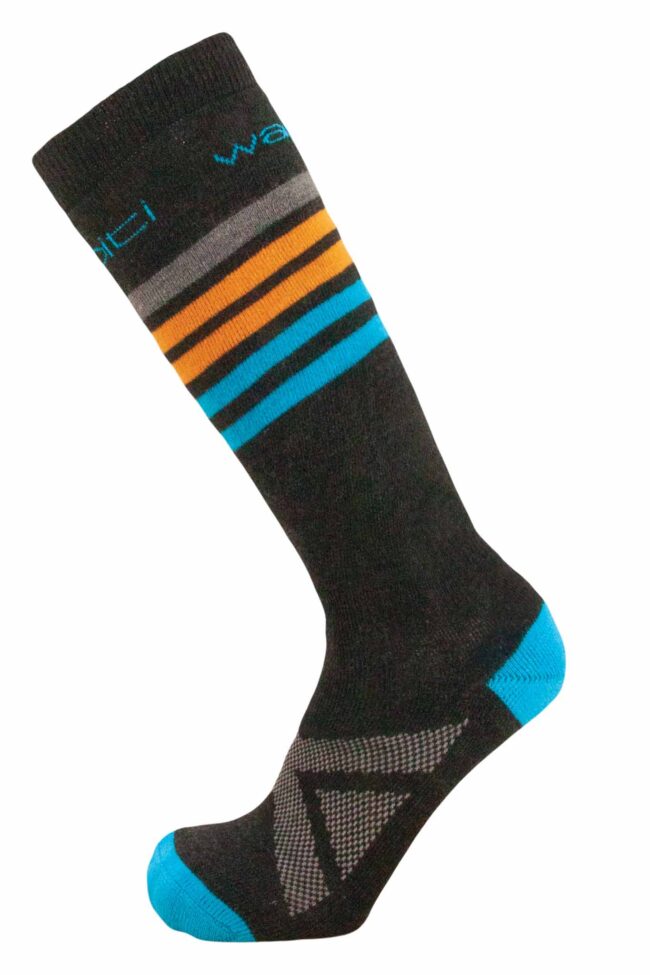 Der Merinowolle-Anteil sorgt für Atmungsaktivität, einen optimalen Feuchtigkeitsaustausch, ein sehr angenehmes Tragegefühl ohne dass was kratzt. Die gut durchdachten Etails wie der Elastikeinsatz am Rist und die Flachnaht runden diese funktionelle Kindersocke ab.