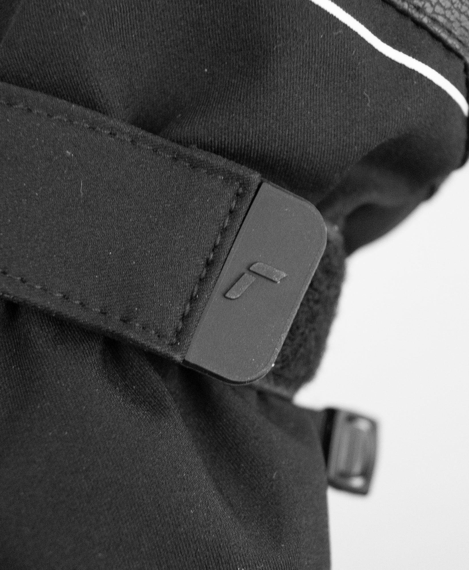 - Kleine gewebte Schlaufen auf der Innenseite des Bündchens ermöglichen das Anbringen externer Sturmsicherungen.
